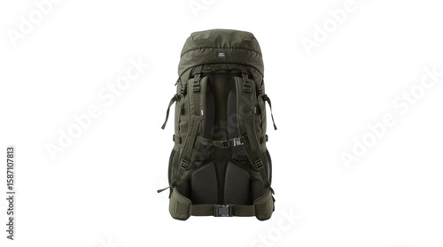 © Syauqi, Fototapeta premium Olive Green Hiking Backpack on Light Grey Background