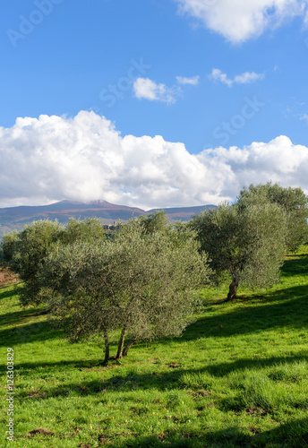 © Georgia K, Fototapeta premium olive grove on green lawn