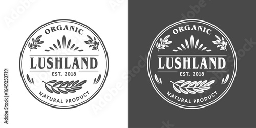 Obraz premium Olive oil design elements. Olive farm logo template isolated on black and...