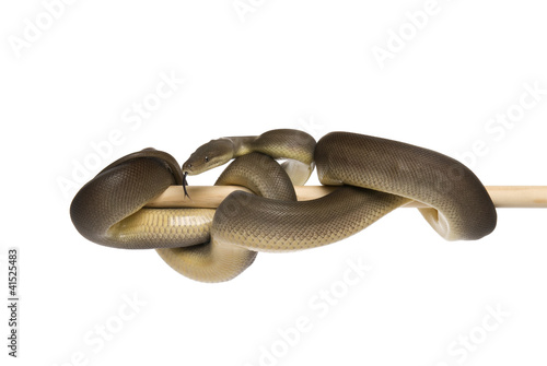 © andrewburgess, Naklejka premium Olive python, Liasis olivaceus, on a white background.