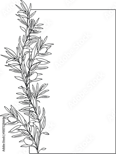 Naklejka premium Olive rectangular, square vertical Frame. Hand drawn Olive Branches and Fruits. Hand drawn vector illustration For Logos, Wedding Invitations, Save the date and greeting cards.