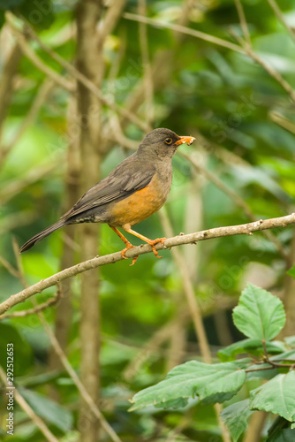 Fototapeta premium Olive Thrush (Turdus olivaceus) on branch, Kenya