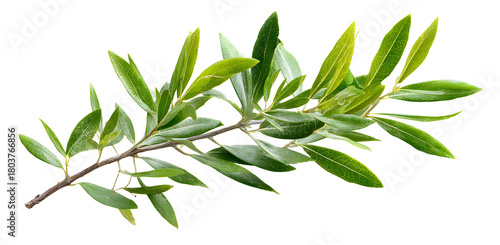 Fototapeta premium olive tree, twig with fresh green leaves isolated on white background,...