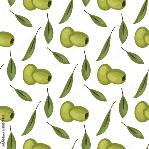 Naklejka premium Olives seamless pattern with ripe olives background design vector illustration for olive oil, natural cosmetics.