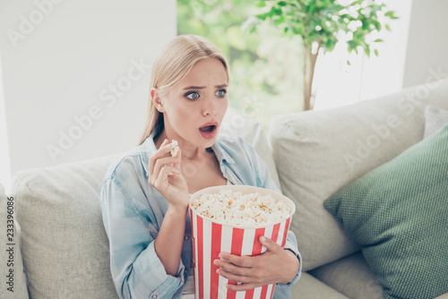 © deagreez, Naklejka premium Omg! Close up face photo portrait of terrified frightened afraid