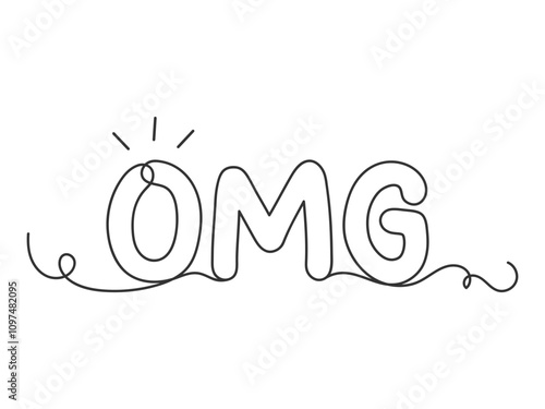 Fototapeta premium Omg continuous one line art drawing isolated vector illustration.