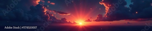 © Withun, Fototapeta premium Ominous sunset with gradient sky, dark clouds, and stars, ominous, clouds, night