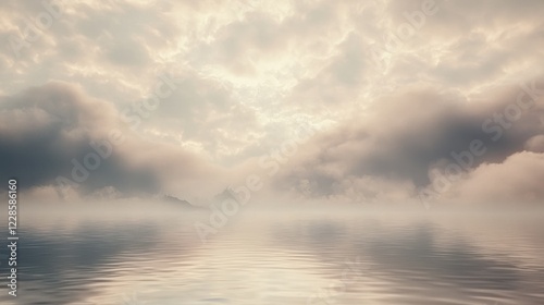 © Jakkarin, Obraz premium Ominous Thick Smoke Overshadowing Calm Water With Muted Colors