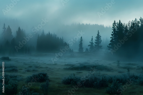 Fototapeta premium Omnipresence in Nature: Ethereal Dawn Wrapped in Serene Fog