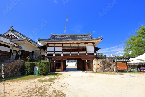 Obraz premium Omotegomon (main gate) of Hiroshima castle, contemporary recreation of a...