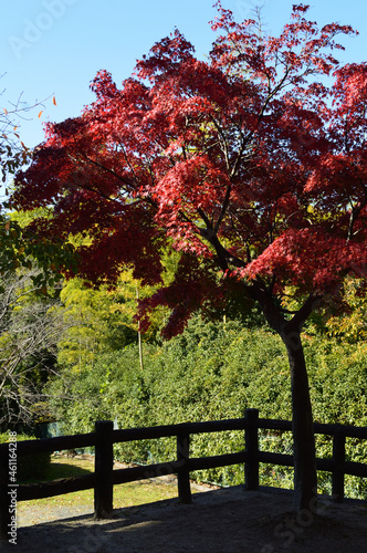 © koufuu, Naklejka premium On a clear autumn day, the trees that changed their leaves to red are colored with light and shade.