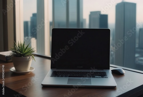 © Алексей Ковалев, Fototapeta premium On a desk, an open laptop is present alongside two cups of coffee