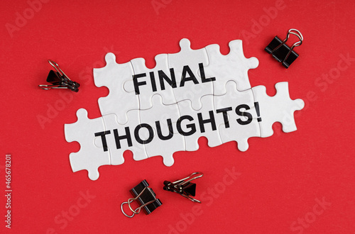 © Dzmitry, Fototapeta premium On a red background, there are puzzles with the inscription - Final Thoughts
