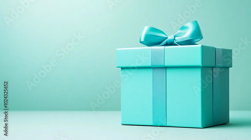 © pics3, Obraz premium On a soft green backdrop, a gift box sits with a subtle shadow adding depth
