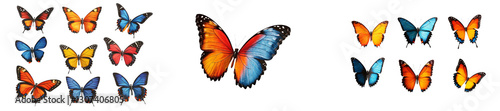 Fototapeta premium On a white background, a beautiful monarch butterfly is isolated, and a set...