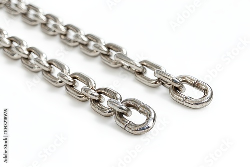 © AI04, Obraz premium On a white background, a collection of silver jewelry chains is shown