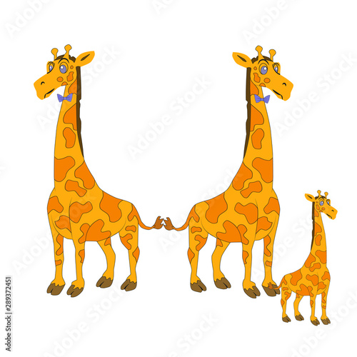 © milashcevuch, Naklejka premium On a white, transparent background, three giraffes, two dads and one child. Giraffes are gay, unconventional families, raising children in unconventional families. Wildlife.