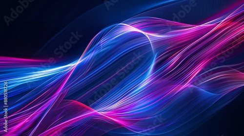 © Антон Сальников, Fototapeta premium On dark blue background black, abstract light motion on colorful curves, digitally enhanced, rim light, light purple.