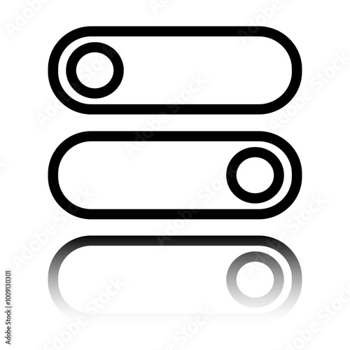 © Leo Kavalli, Obraz premium On off, switch simple icon. Flat design. Black icon with mirror reflection. White background