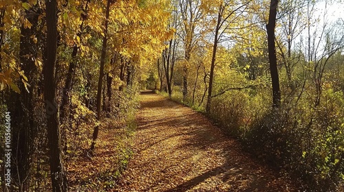© AugmentArt, Obraz premium On The Paths In Natural Reserve Of The Burcina Felice Piacenza Park Golden Autumn
