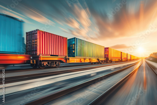 Fototapeta premium On the railway, trains carrying goods pass quickly