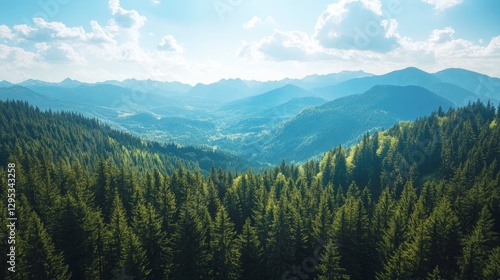 © Mufida's Gallery, Fototapeta premium on top of the mountain with an open forest behind.