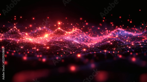 © VicPhoto, Fototapeta premium Ondas luminosas digitales en un paisaje abstracto de datos