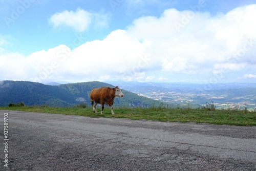 © New Africa, Obraz premium One adorable cow near road in mountains