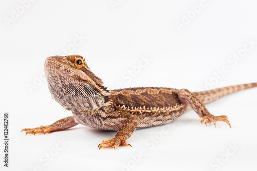 © PBaishev, Naklejka premium one agama bearded on white background.reptile close-up.