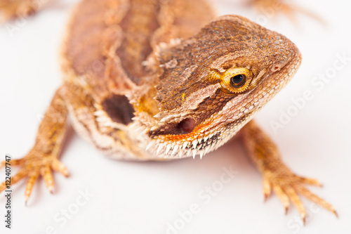 © PBaishev, Naklejka premium one agama bearded on white background.reptile close-up.