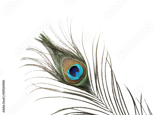 © New Africa, Obraz premium One beautiful peacock feather isolated on white