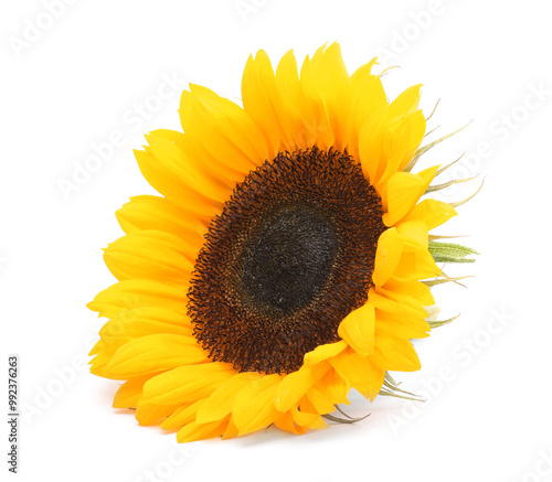 Fototapeta premium One beautiful sunflower with bright petals isolated on white