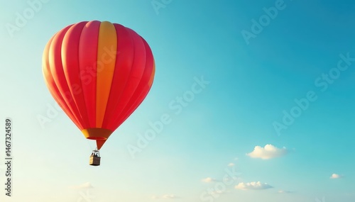 © Uravan, Fototapeta premium One brightly colored hot air balloon against clear sky, different, blue