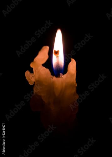 Fototapeta premium One candle flame at night closeup - isolated