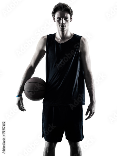 Naklejka premium one caucasian basketball player man isolated in silhouette shadow on white background