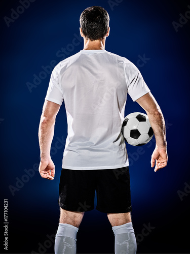 © snaptitude, Obraz premium one caucasian soccer player man isolated on black background