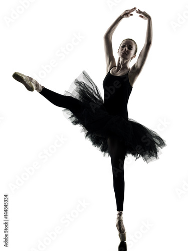 Obraz premium one caucasian woman Ballerina dancer dancing isolated on white background in silhouette