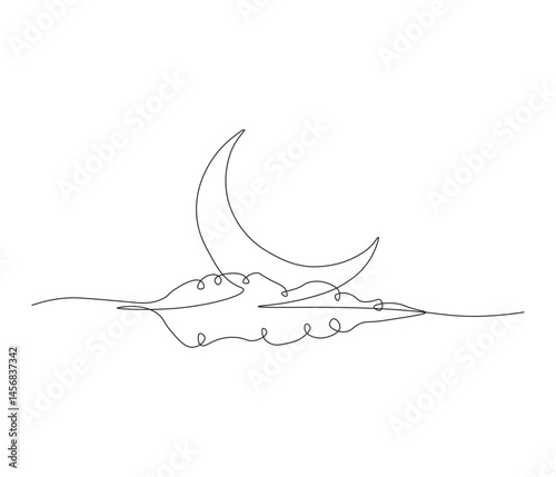 © Ardisth, Fototapeta premium One Continuous Line drawing of aesthethic crescent moon. single line illustration of crescent moon. Editable Outline