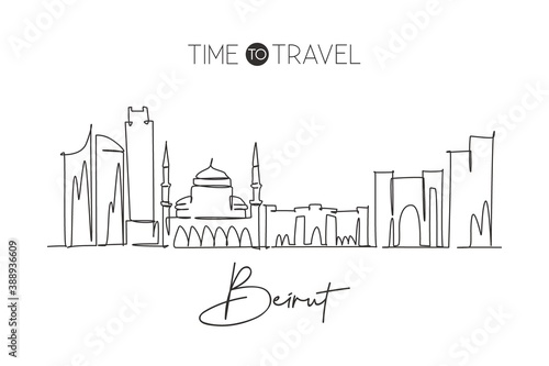 Fototapeta premium One continuous line drawing of Beirut city skyline, Lebanon. Beautiful city...