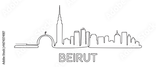© Mofazzelh, Obraz premium One continuous line drawing of Beirut city skyline, Lebanon. Beautiful city landmark. World landscape tourism and travel vacation. Vector black silhouette. with white background