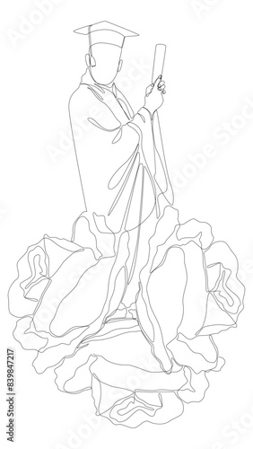 © Robert, Fototapeta premium One continuous line of Graduation, man wearing Mortarboard with rose flowers. Thin Line Illustration vector concept. Contour Drawing Creative ideas.
