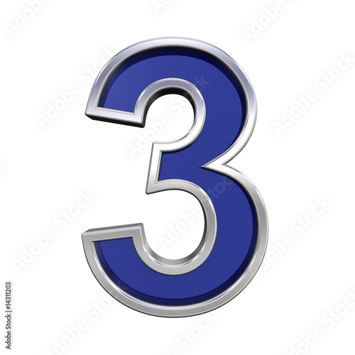 © Piotr Pawinski, Naklejka premium One digit from blue glass with chrome frame alphabet set