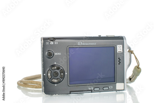 Fototapeta premium One digital camera isolated on white background, close-up.