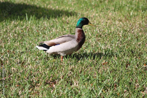 Obraz premium One duck walking on grass