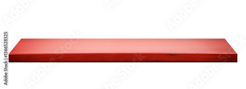 © New Africa, Fototapeta premium One empty red wooden shelf isolated on white