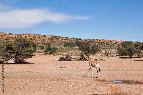 © Alta Oosthuizen, Naklejka premium One giraffe walking in the desert dry landscape