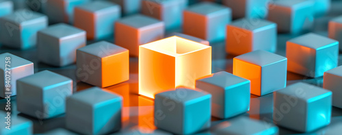 Obraz premium One Glowing Cube Among Ordinary Cubes