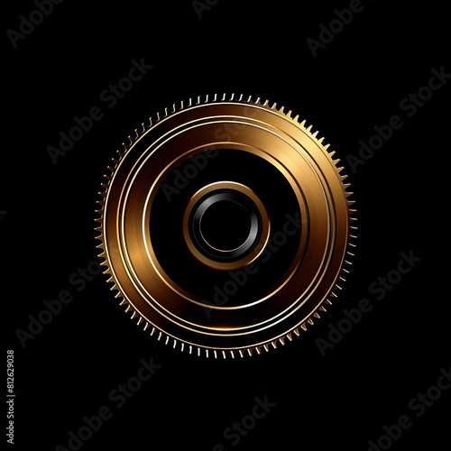 © Adam, Fototapeta premium One Golden Gear Symbol Isolated on a Black Background