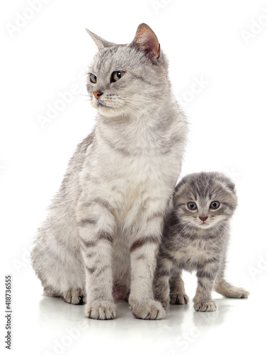 Obraz premium One gray cat and a kitten.