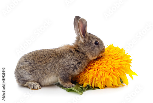 © ANASTASIIA, Obraz premium One gray rabbit with sunflower.